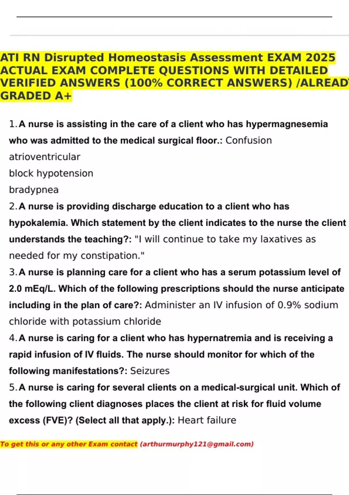 ATI RN Disrupted Homeostasis Assessment EXAM 2025