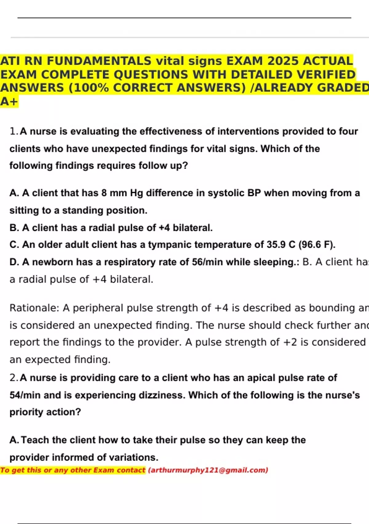 ATI RN FUNDAMENTALS vital signs EXAM 2025 ACTUAL