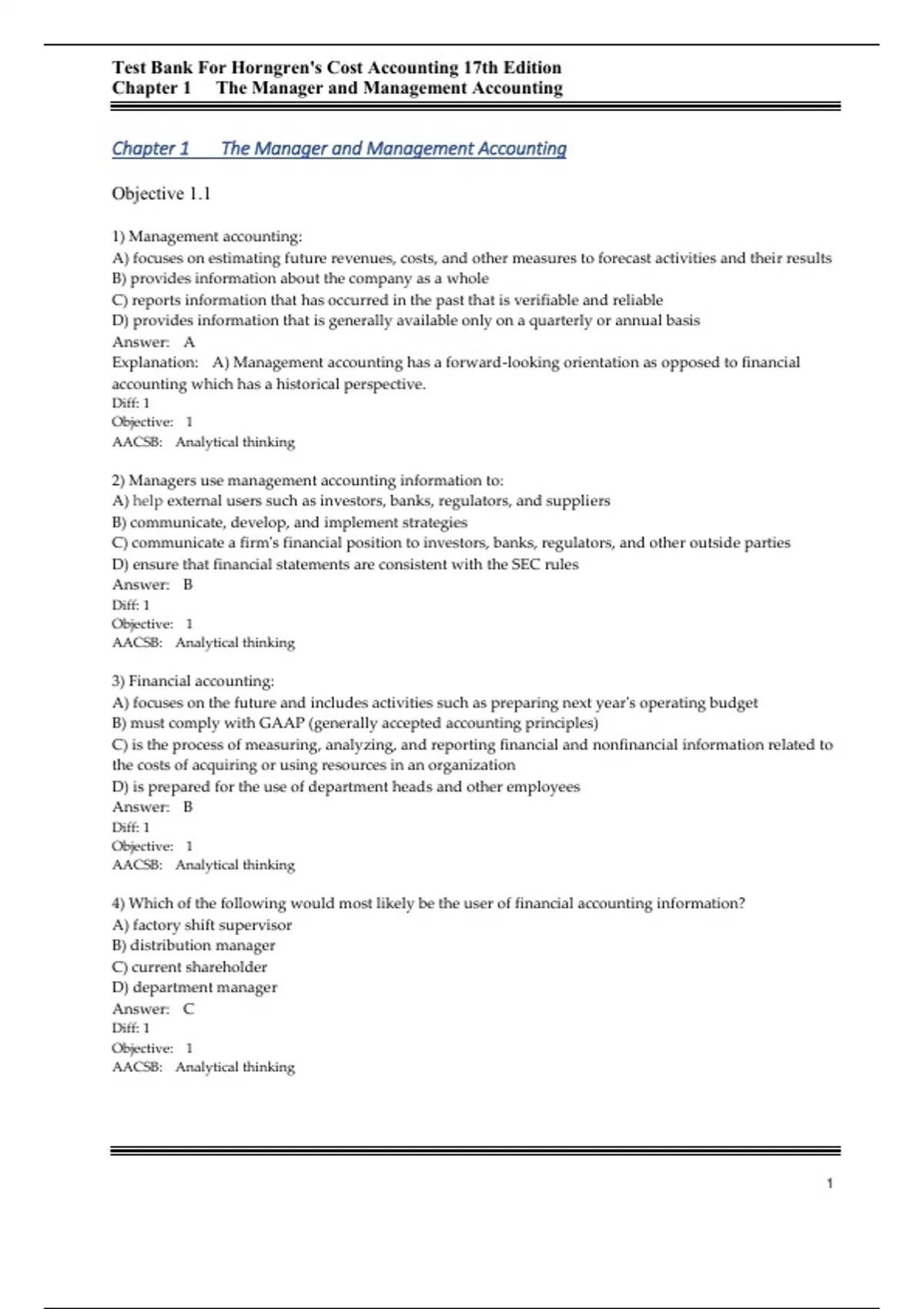 , Test Bank For Horngren's Cost Accounting 17th Edition