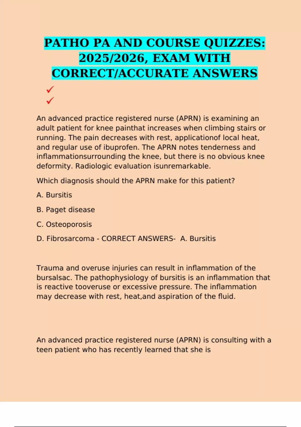 D. Fibrosarcoma - CORRECT ANSWERS- A. Bursitis