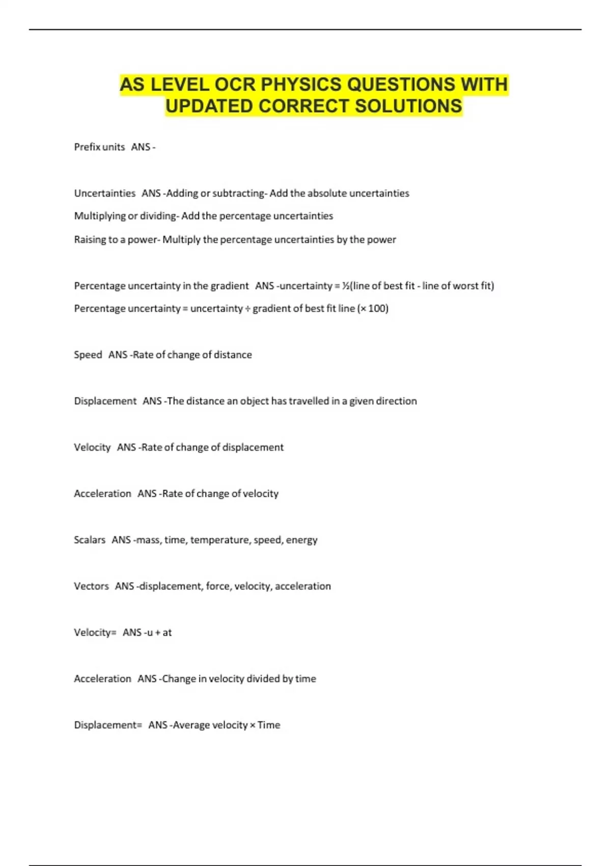 AS LEVEL OCR PHYSICS QUESTIONS WITH UPDATED CORRECT SOLUTIONS