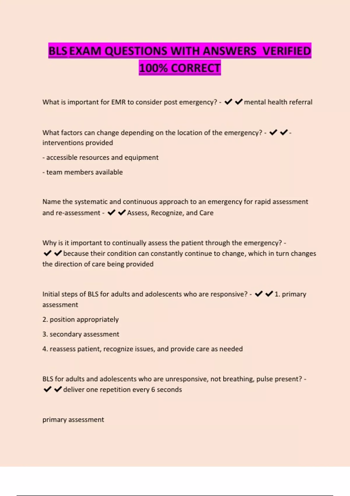 BLS EXAM QUESTIONS WITH ANSWERS VERIFIED 100% CORRECT