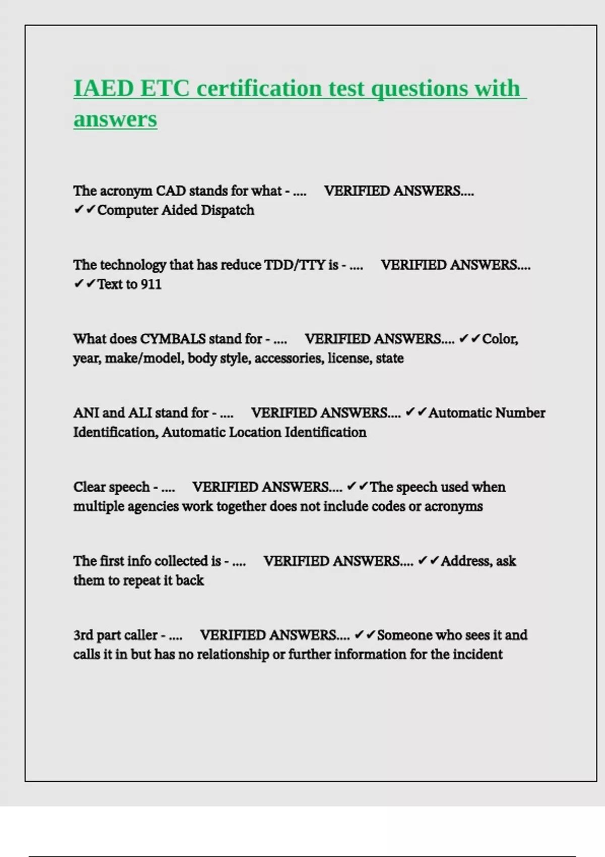 IAED ETC certification test questions with answers