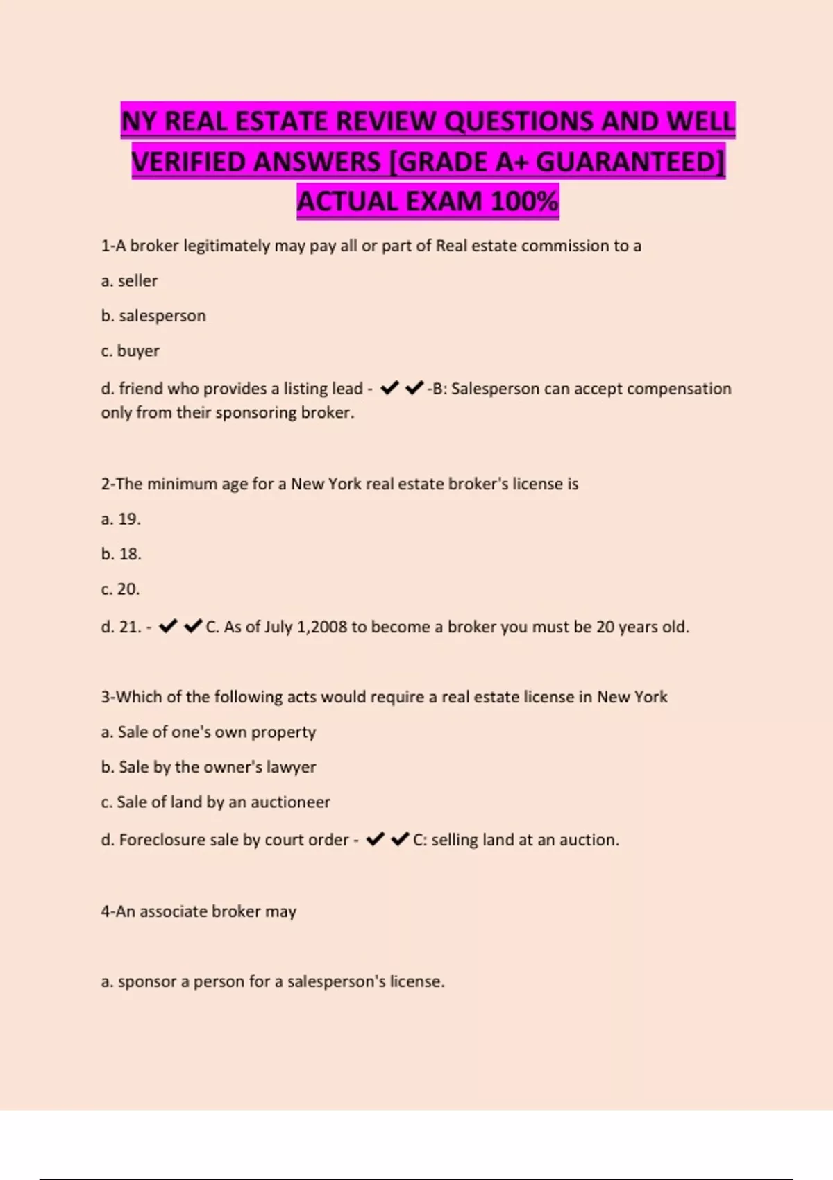 NY REAL ESTATE REVIEW QUESTIONS AND WELL VERIFIED ANSWERS [GRADE A+ GUARANTEED] ACTUAL EXAM 100%