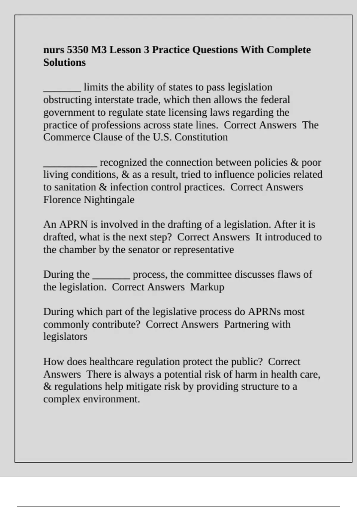 the legislation. Correct Answers Markup