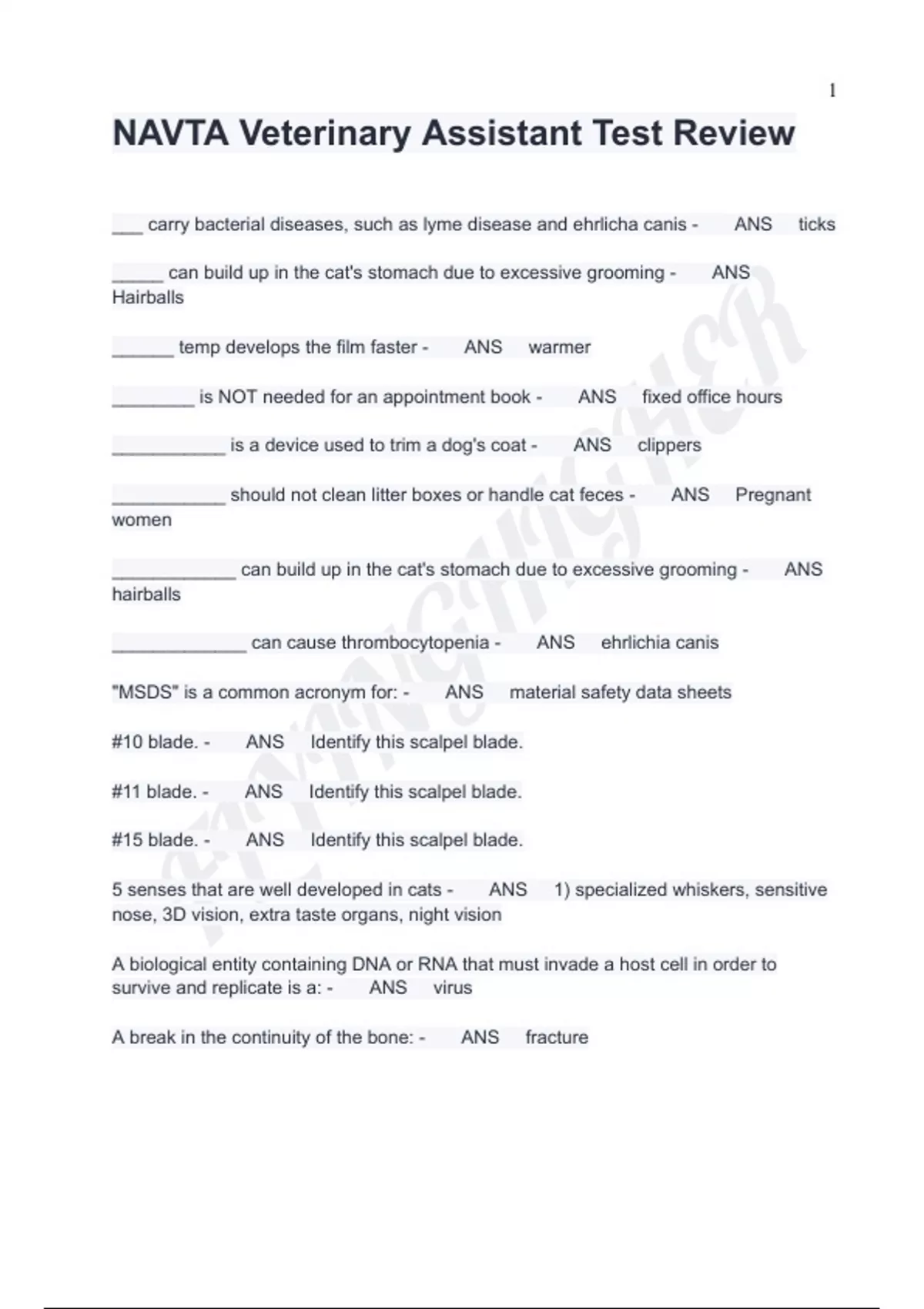 NAVTA Veterinary Assistant Test Review