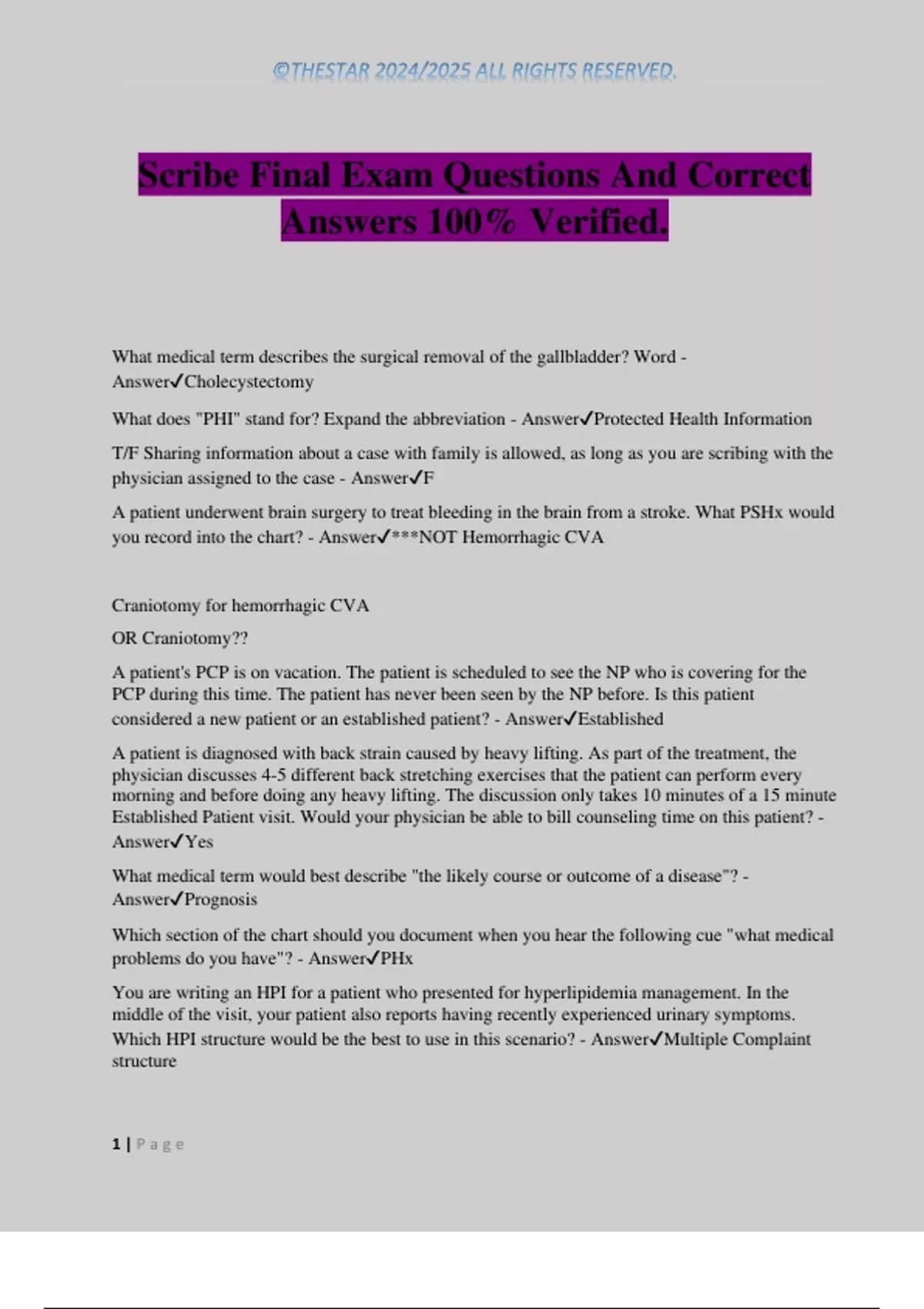 Scribe Final Exam Questions And Correct Answers 100% Verified.