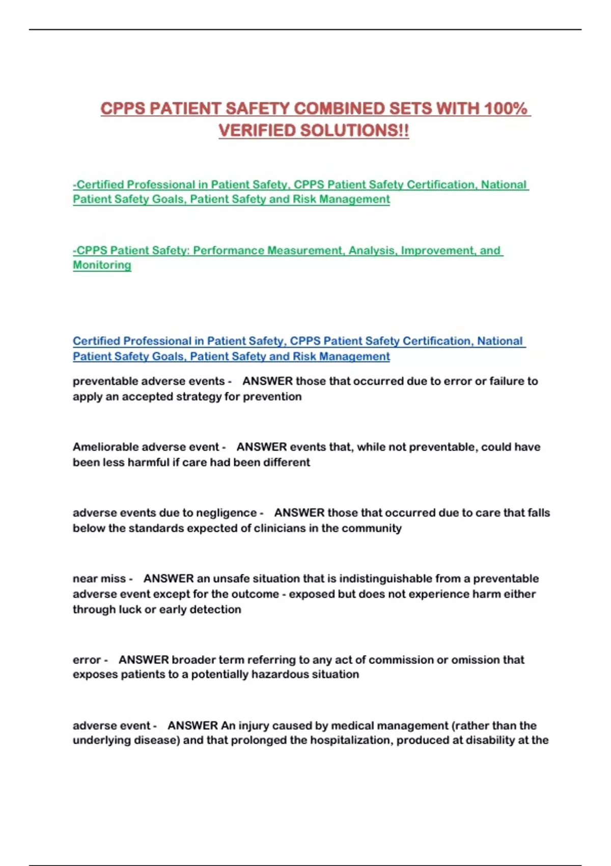 CPPS PATIENT SAFETY COMBINED SETS WITH 100% VERIFIED SOLUTIONS!!...
