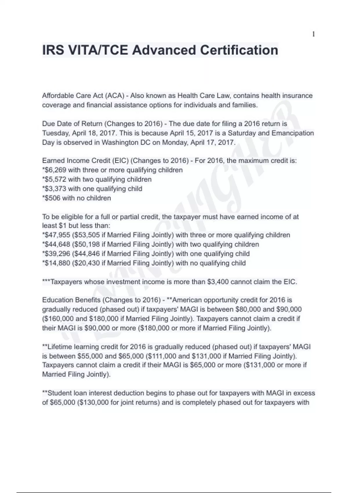 IRS VITA/TCE Advanced Certification QUESTIONS & ANSWERS ( A+ GRADED 100% VERIFIED)