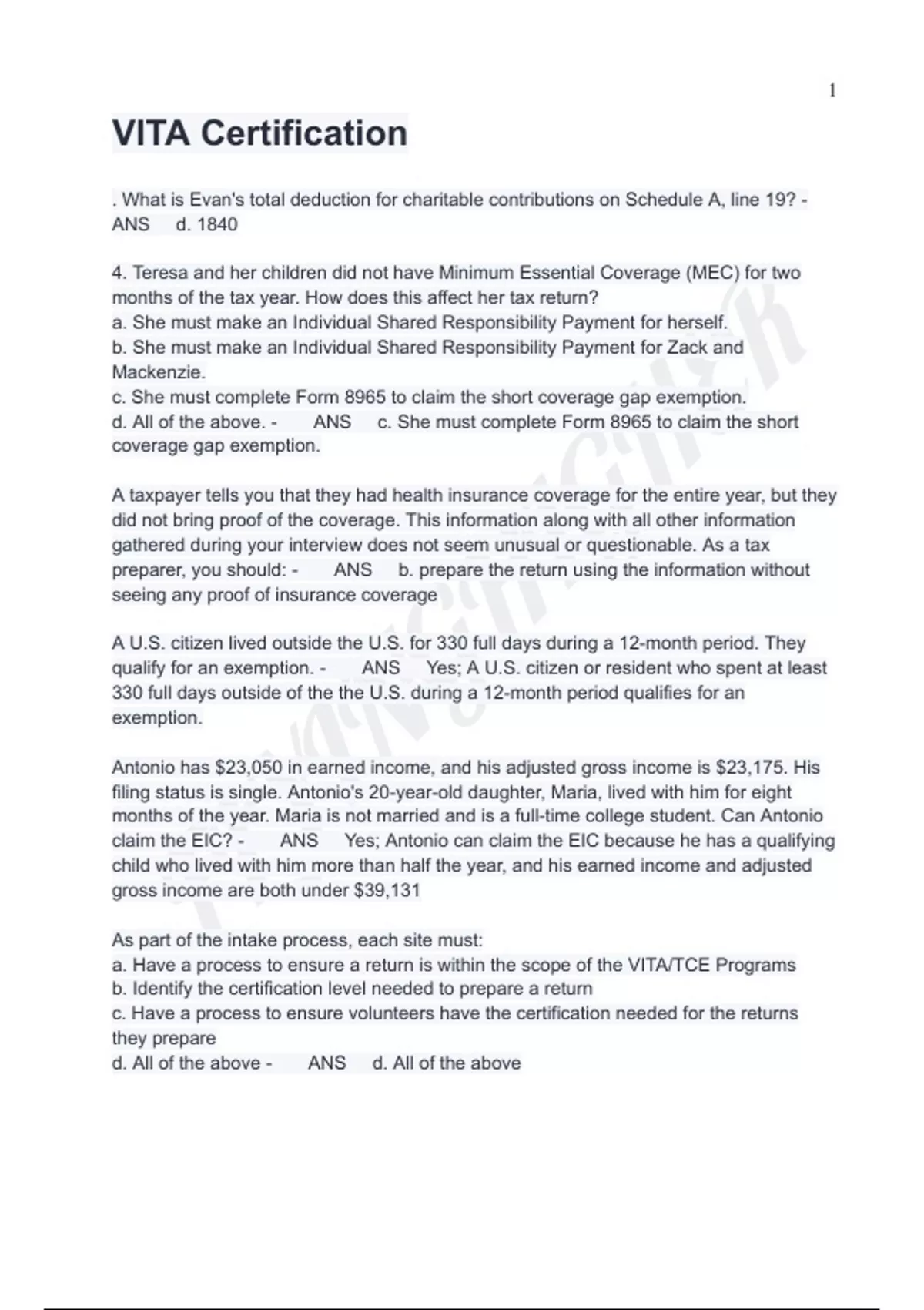 d. All of the above. - ANS c. She must complete Form 8965 to claim the short