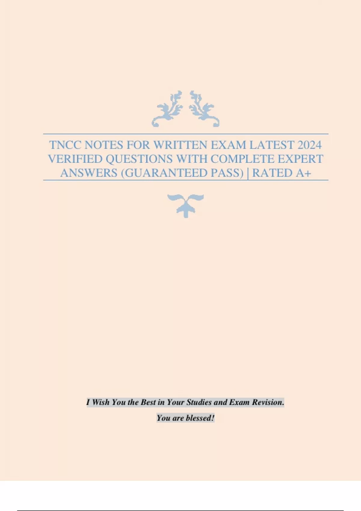TNCC NOTES FOR WRITTEN EXAM LATEST 2024 VERIFIED QUESTIONS WITH COMPLETE EXPERT ANSWERS (GUARANTEED PASS) | RATED A+