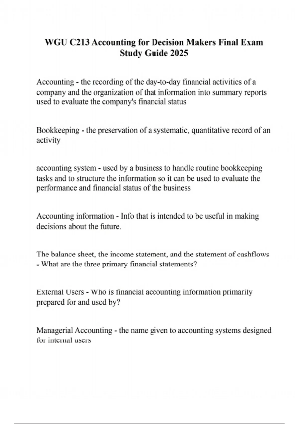WGU C213 Accounting for Decision Makers Final Exam Study Guide 2025