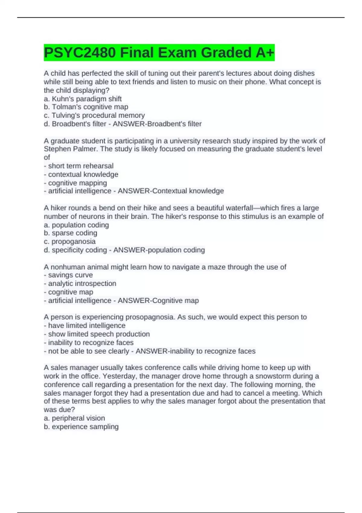 PSYC2480 Final Exam Graded A+