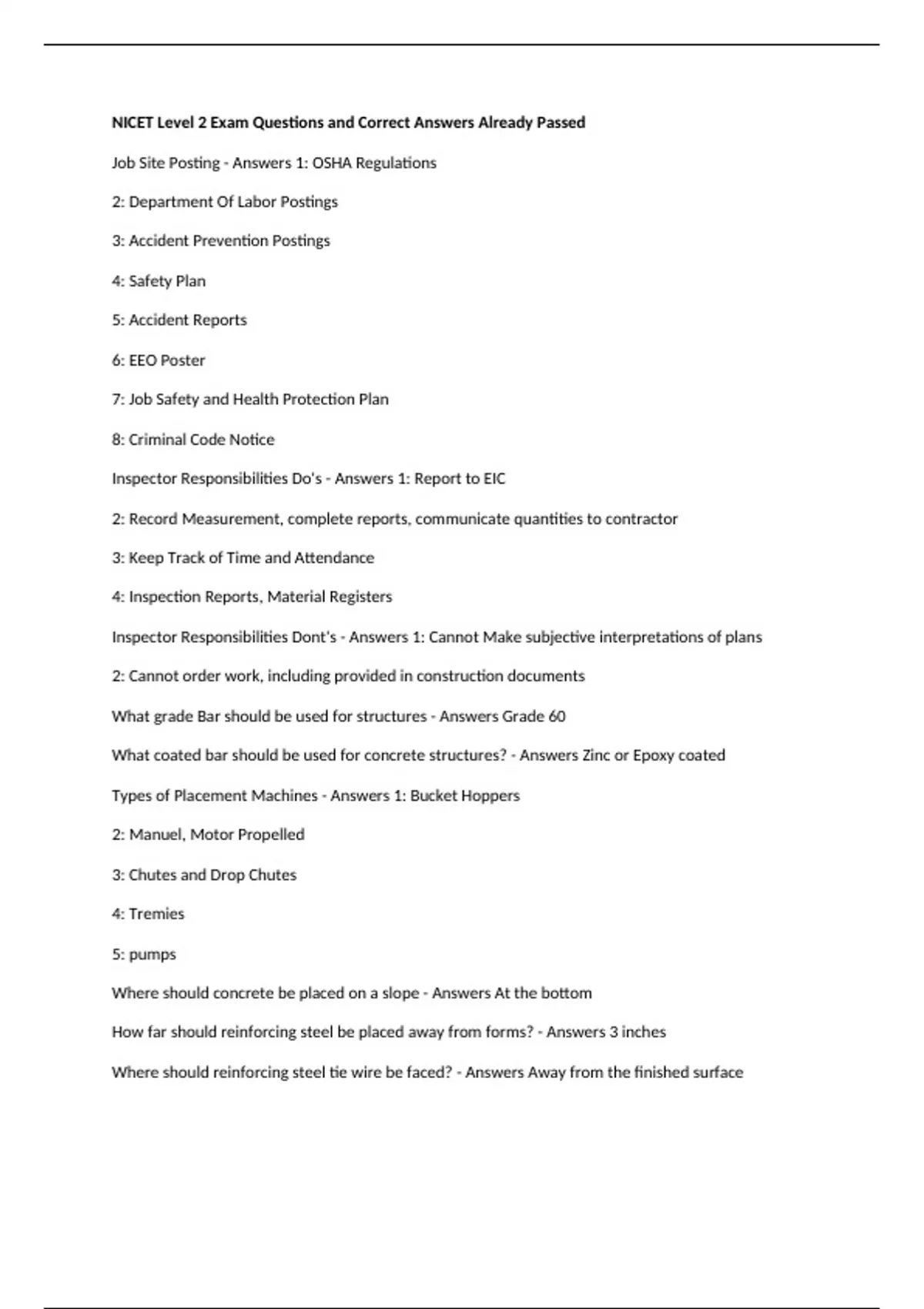 Job Site Posting - Answers 1: OSHA Regulations
