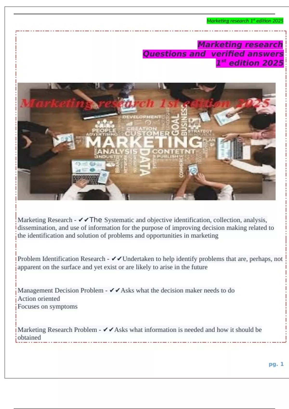 Marketing Research - ✔✔The Systematic and objective identification, collection, analysis,