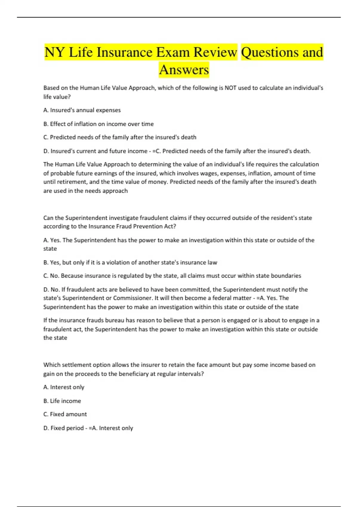 NY Life Insurance Exam Review Questions and Answers