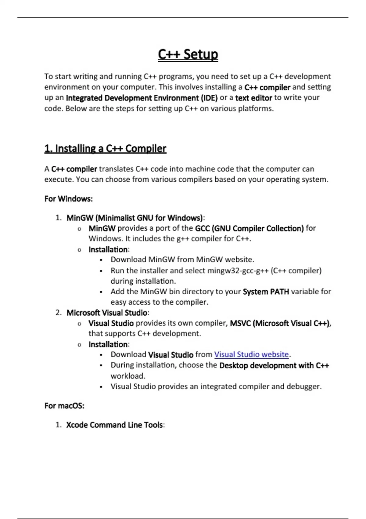 o Visual Studio provides its own compiler, MSVC (Microsoft Visual C++),
