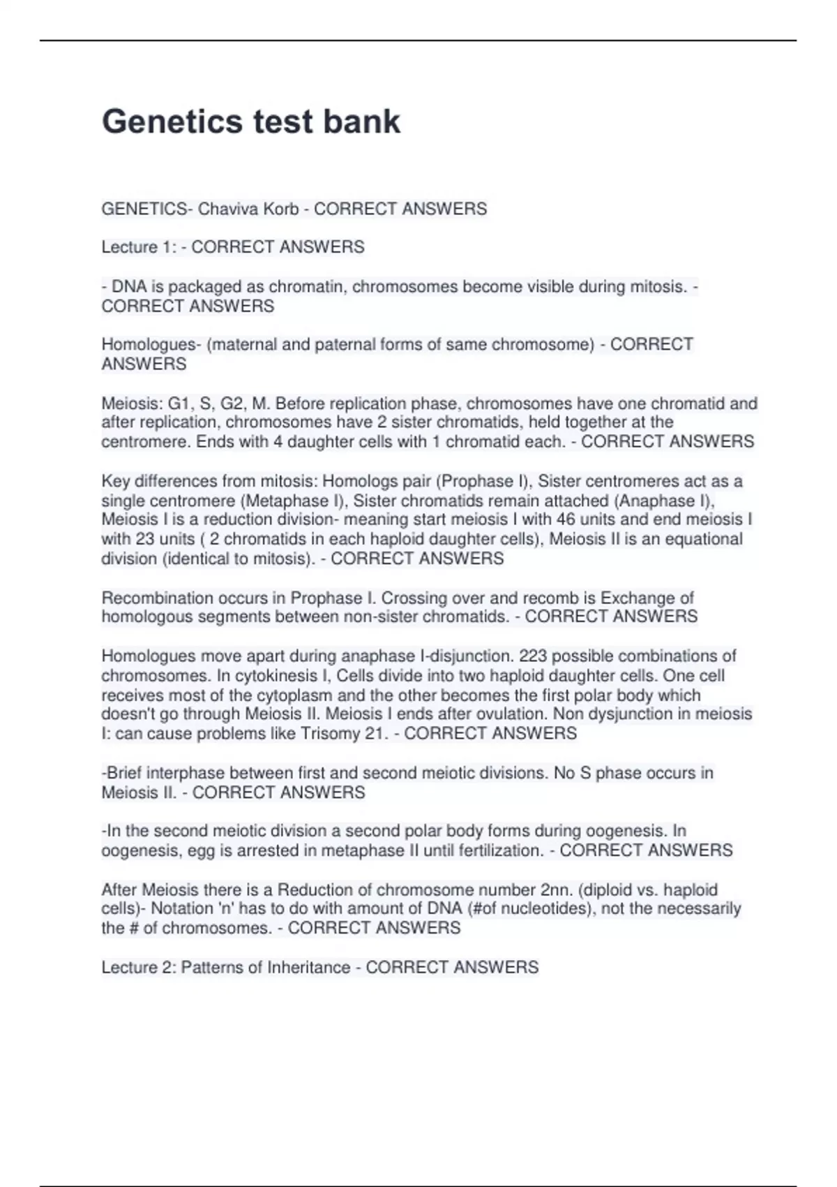 GENETICS- Chaviva Korb - CORRECT ANSWERS