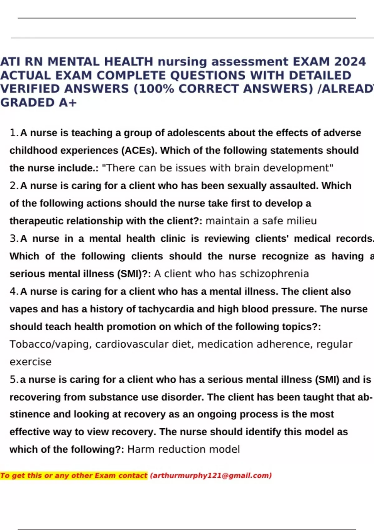 ATI RN MENTAL HEALTH nursing assessment EXAM 2024