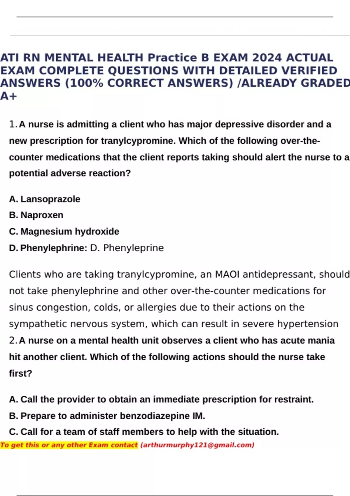 ATI RN MENTAL HEALTH Practice B EXAM 2024 ACTUAL
