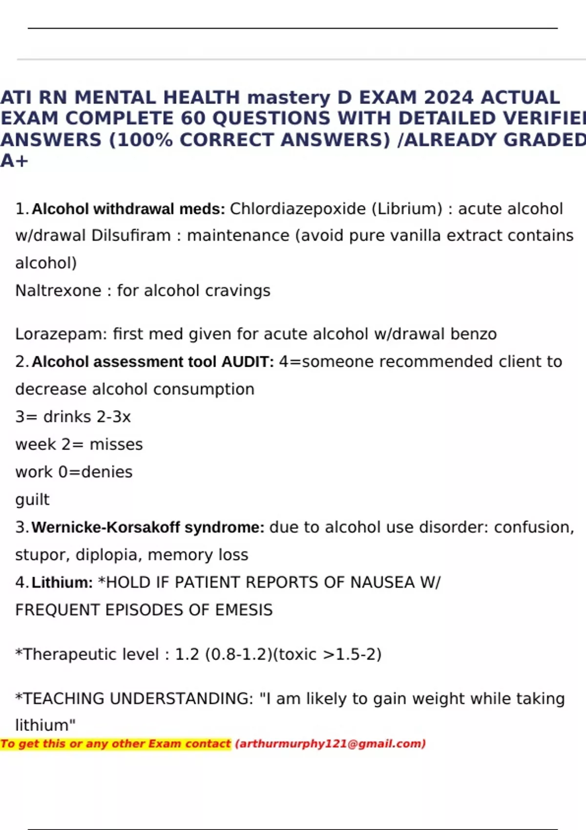 ATI RN MENTAL HEALTH mastery D EXAM 2024 ACTUAL