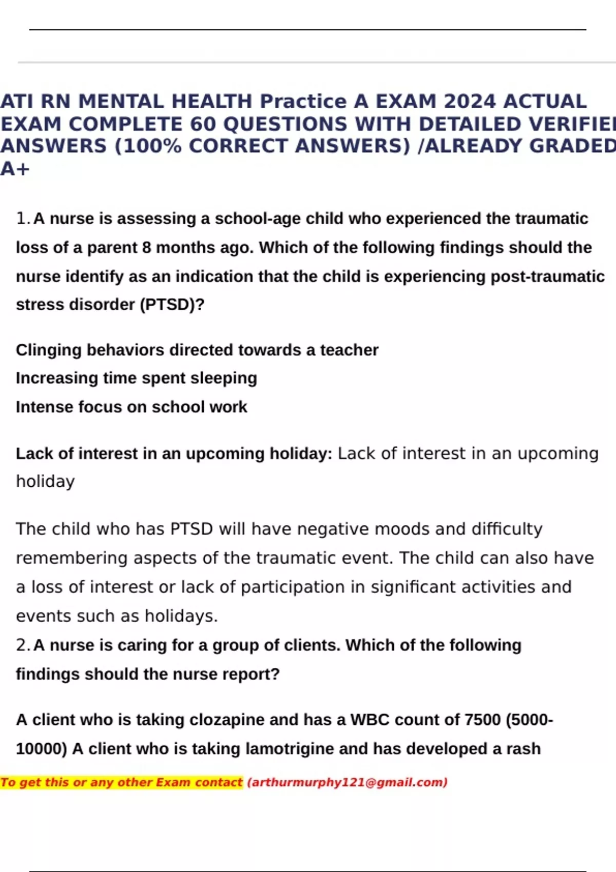 ATI RN MENTAL HEALTH Practice A EXAM 2024 ACTUAL EXAM COMPLETE 60 QUESTIONS WITH DETAILED VERIFIED ANSWERS (100% CORRECT ANSWERS) /ALREADY GRADED A+