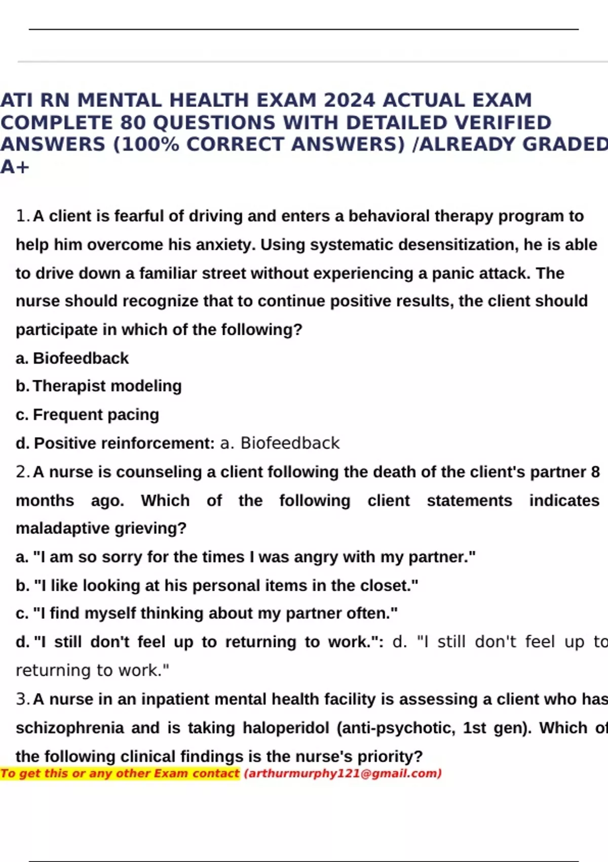 ATI RN MENTAL HEALTH EXAM 2024 ACTUAL EXAM