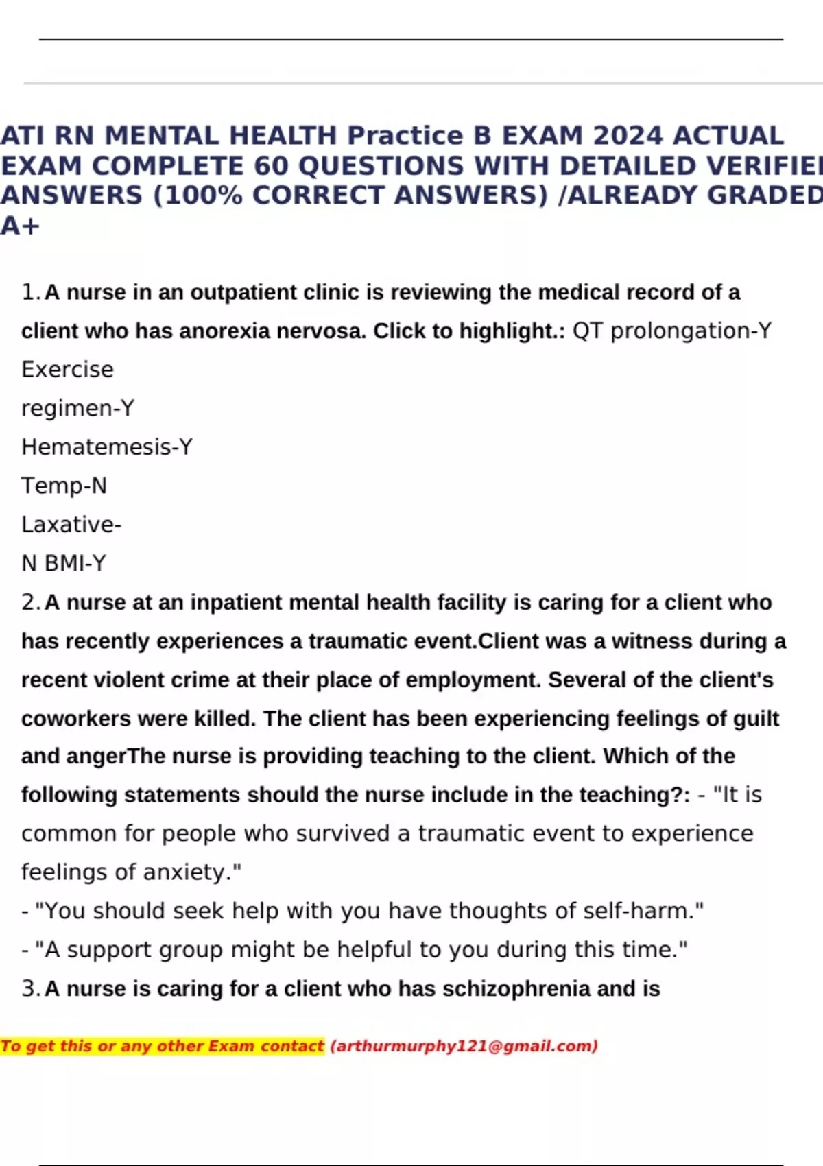 ATI RN MENTAL HEALTH Practice B EXAM 2024 ACTUAL