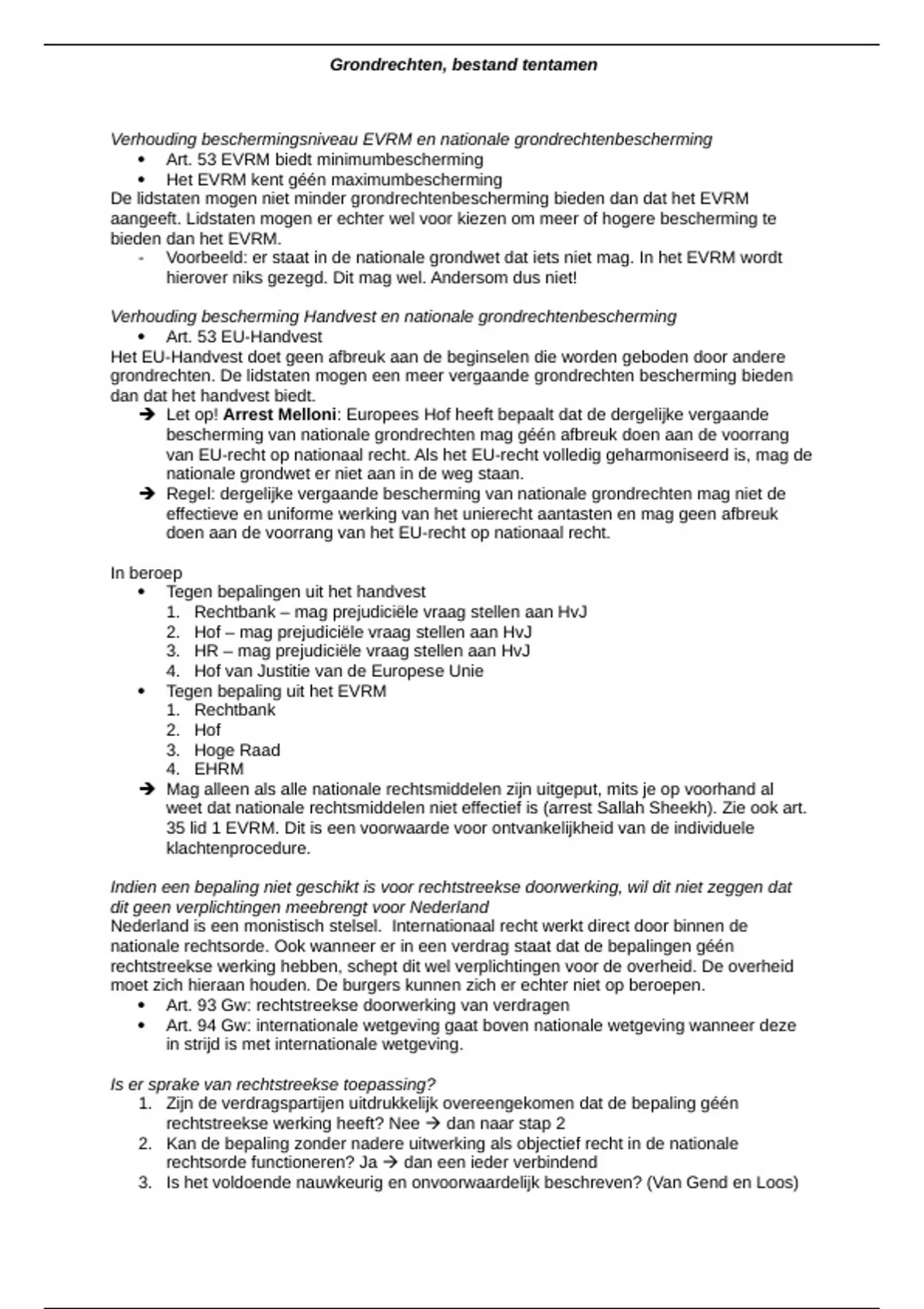 , Grondrechten, bestand tentamen
