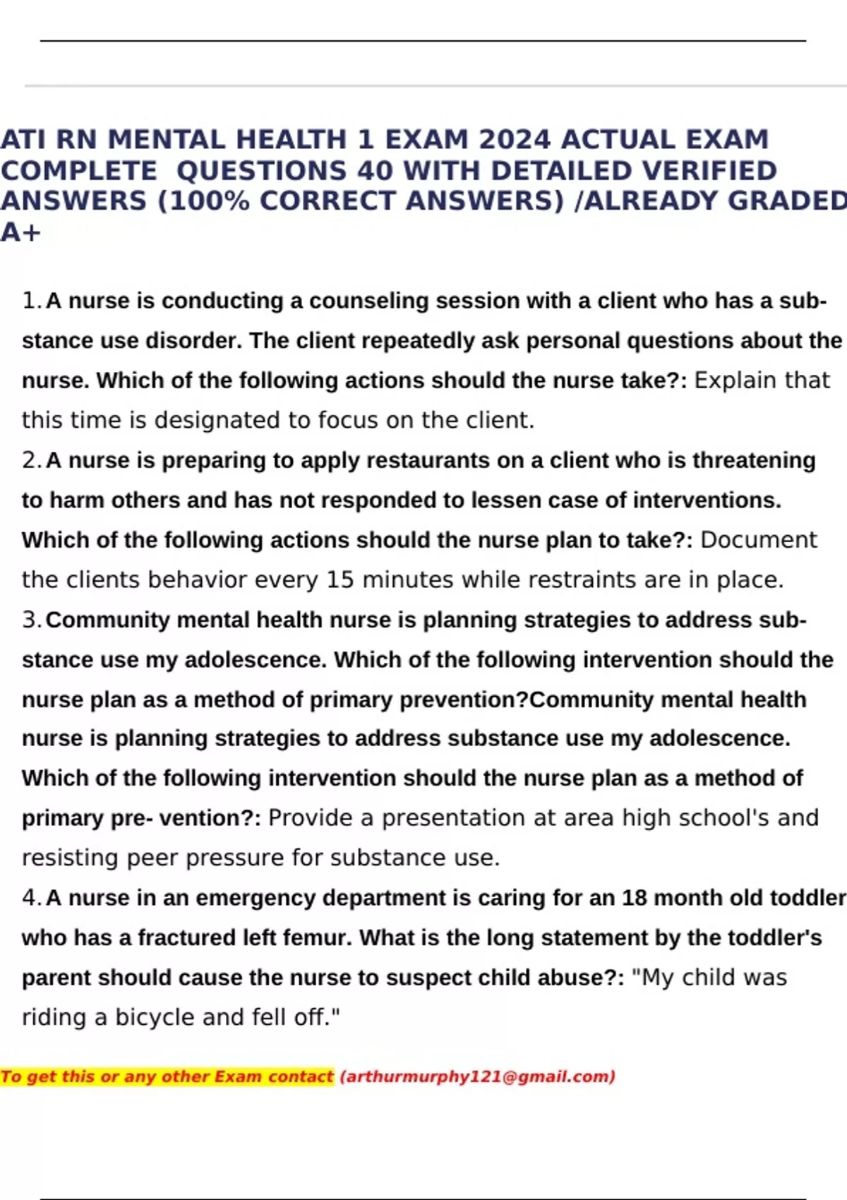 ATI RN MENTAL HEALTH 1 EXAM 2024 ACTUAL EXAM