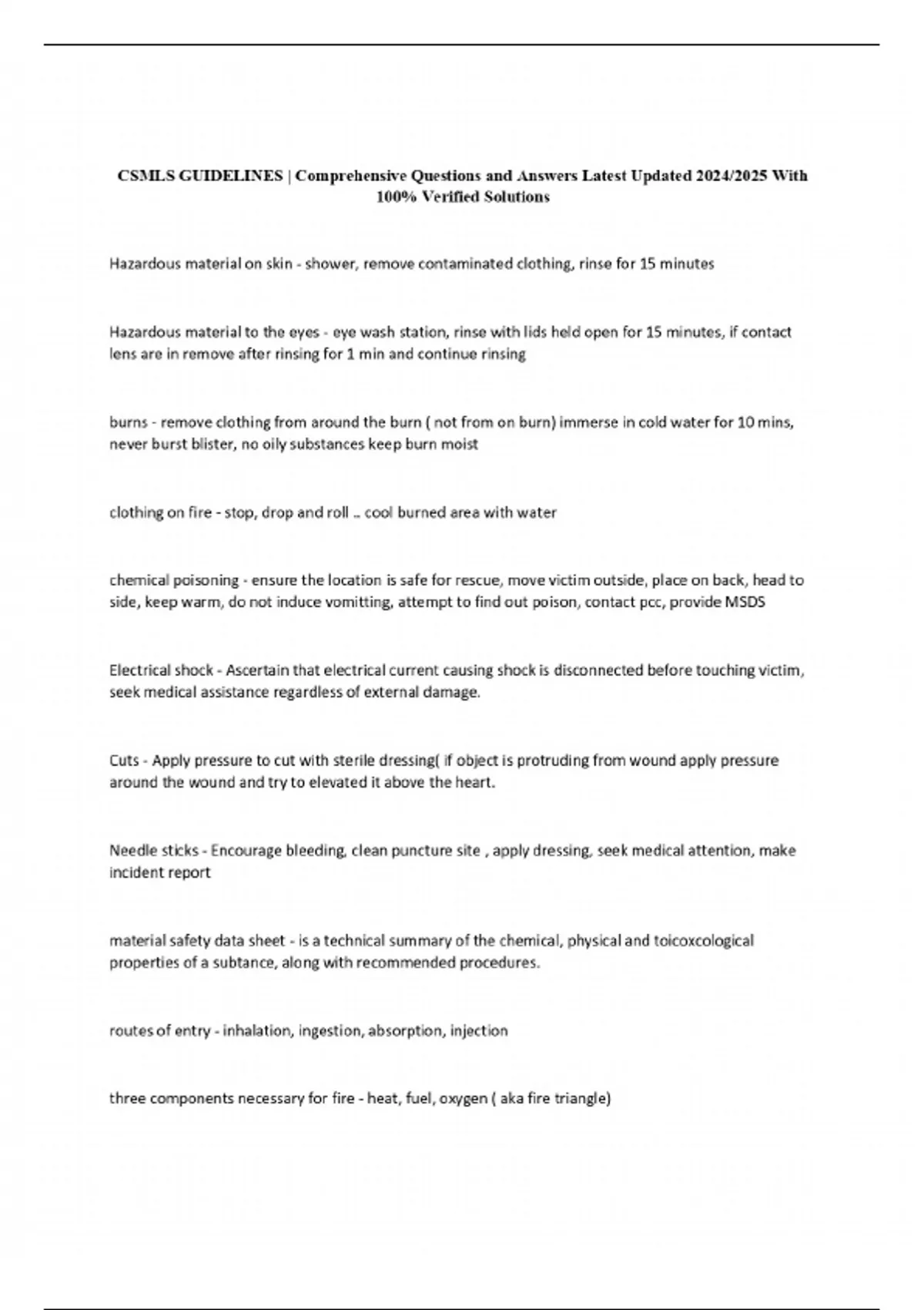 csmls guidelines comprehensive questions and ans