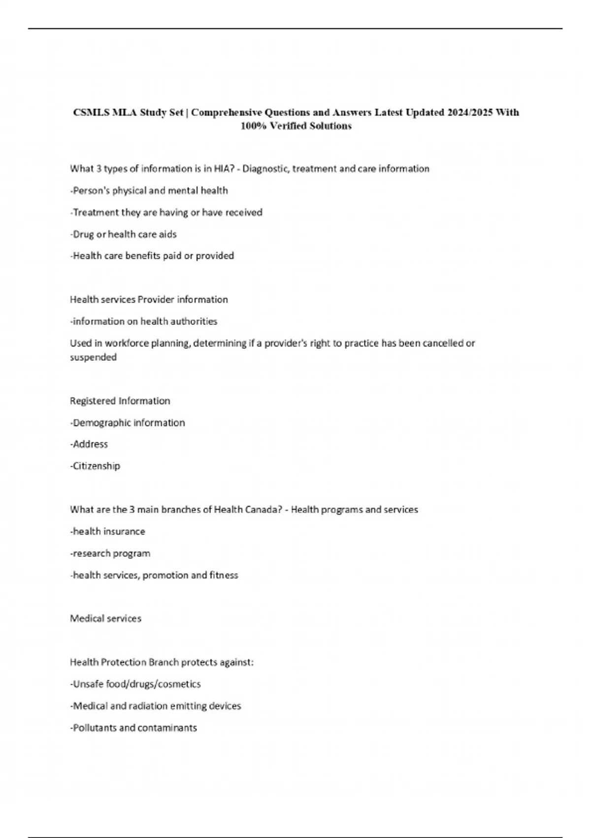 CSMLS MLA Study Set | Comprehensive Questions and Answers