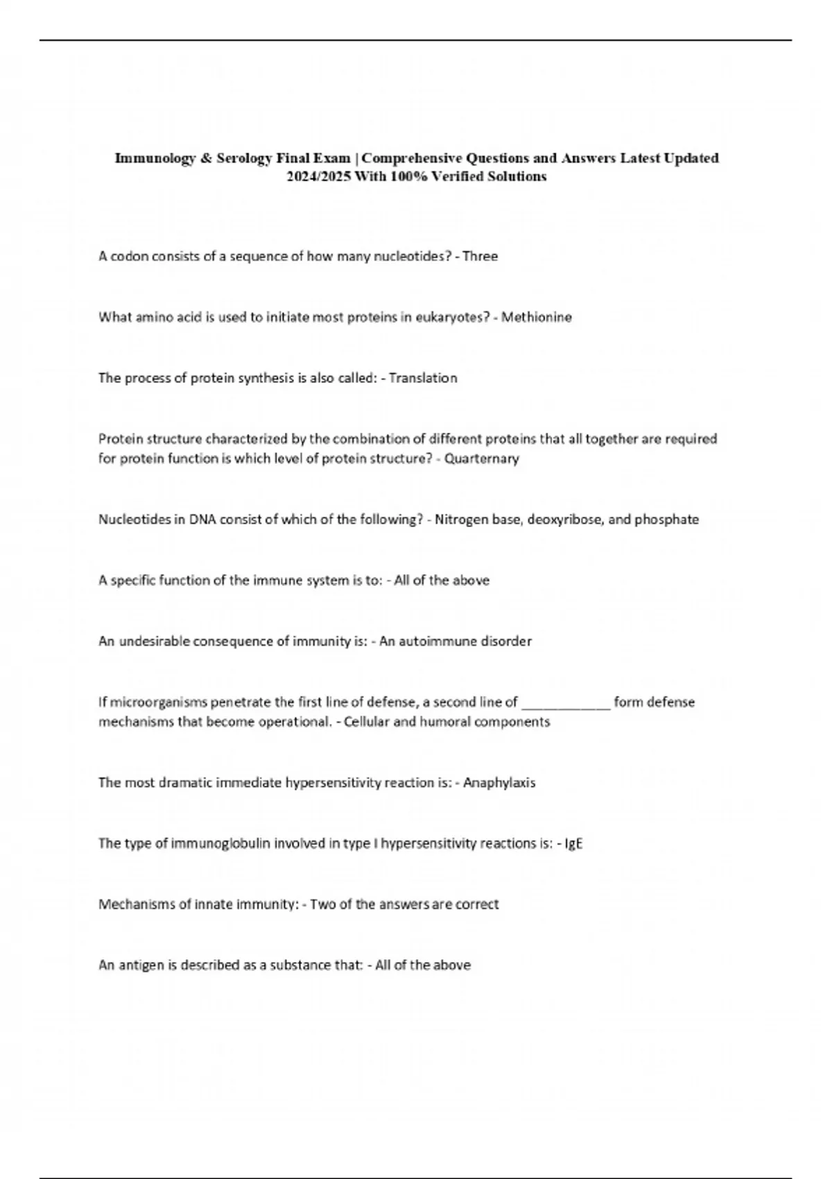 Immunology & Serology Final Exam | Comprehensive Questions and Answers