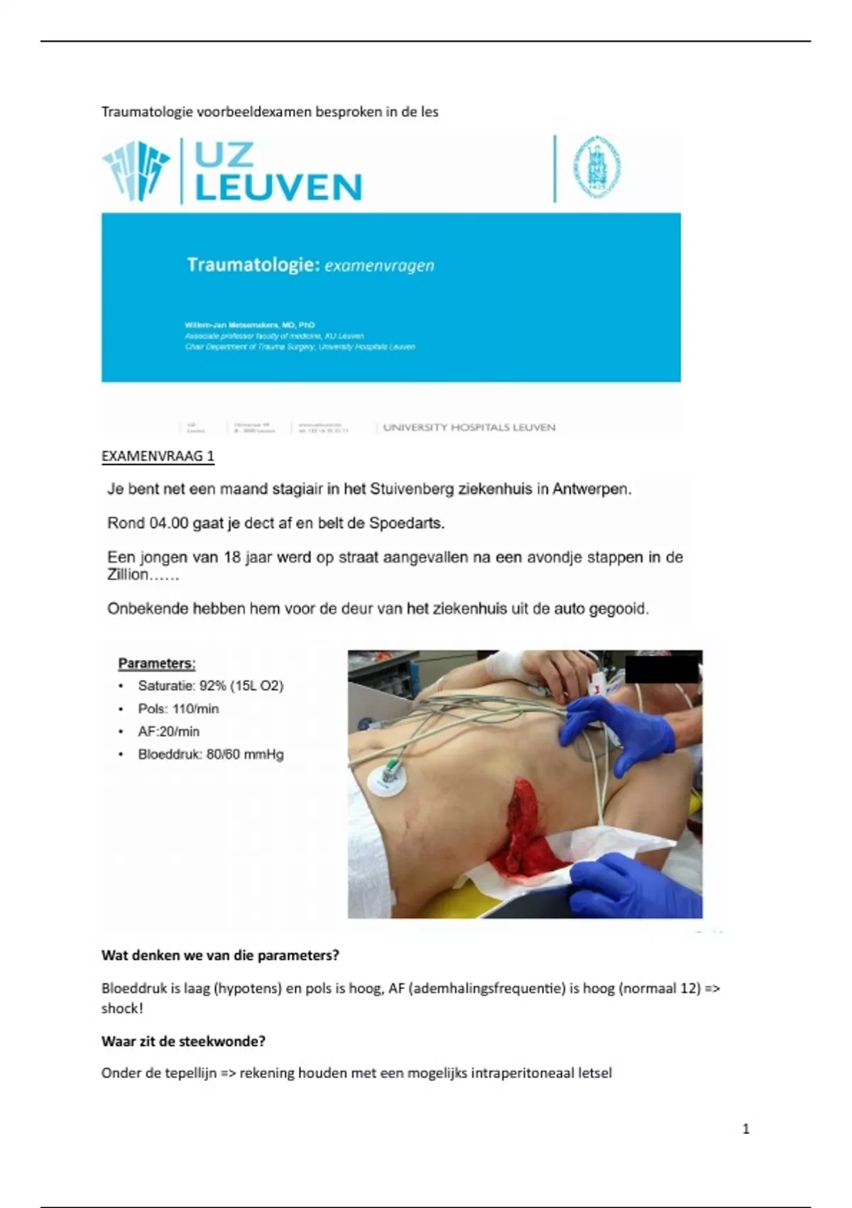 Bloeddruk is laag (hypotens) en pols is hoog, AF (ademhalingsfrequentie) is hoog (normaal 12) =>