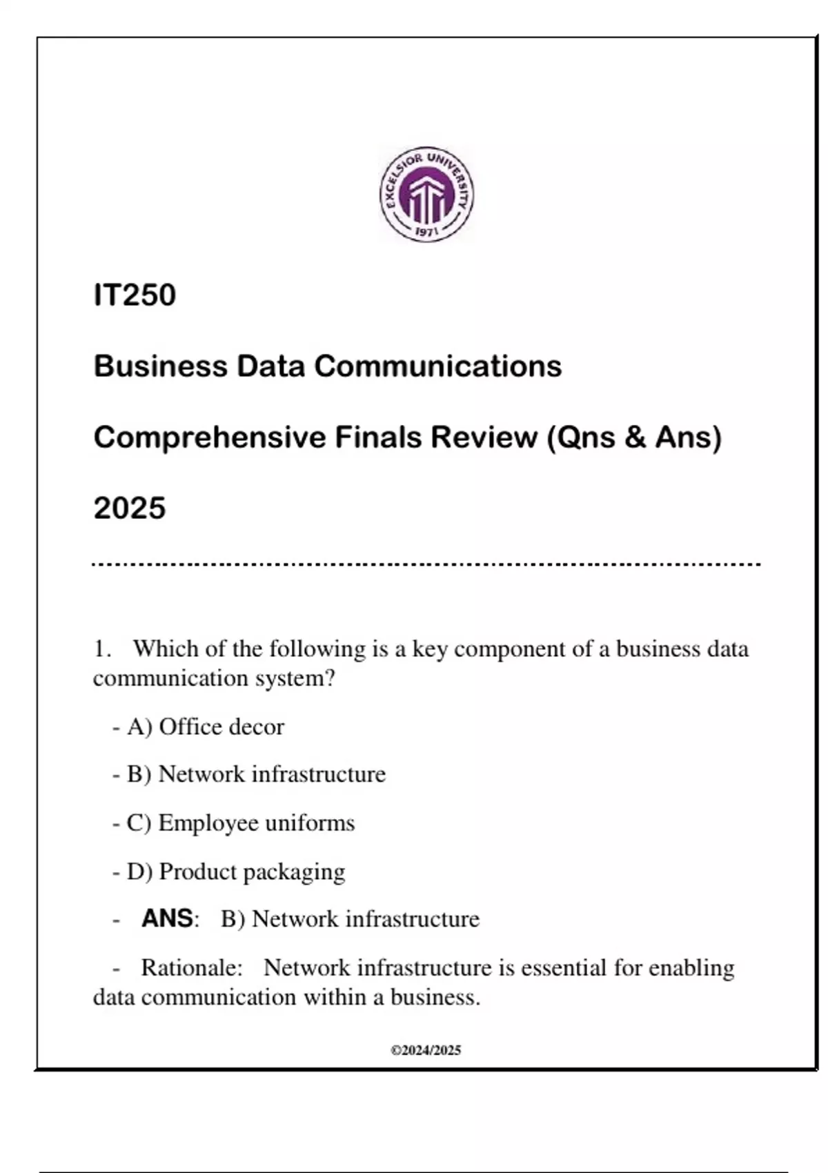 - ANS: B) Network infrastructure