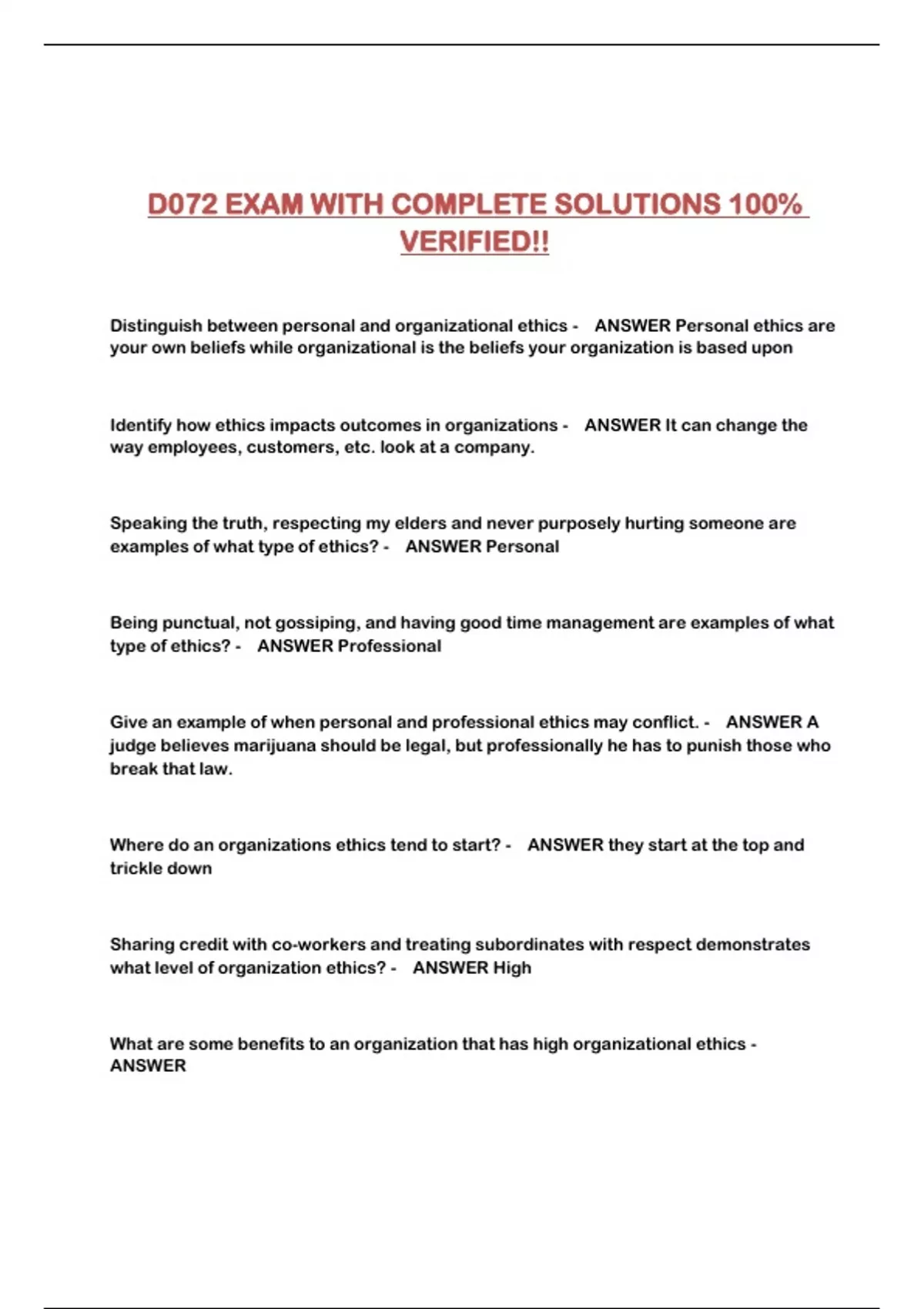 D072 EXAM WITH COMPLETE SOLUTIONS 100% VERIFIED!!...