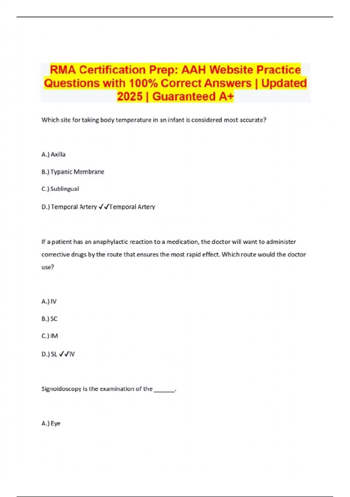 RMA Certification Prep: AAH Website Practice Questions with 100% Correct Answers | Updated 2025 | Guaranteed A+