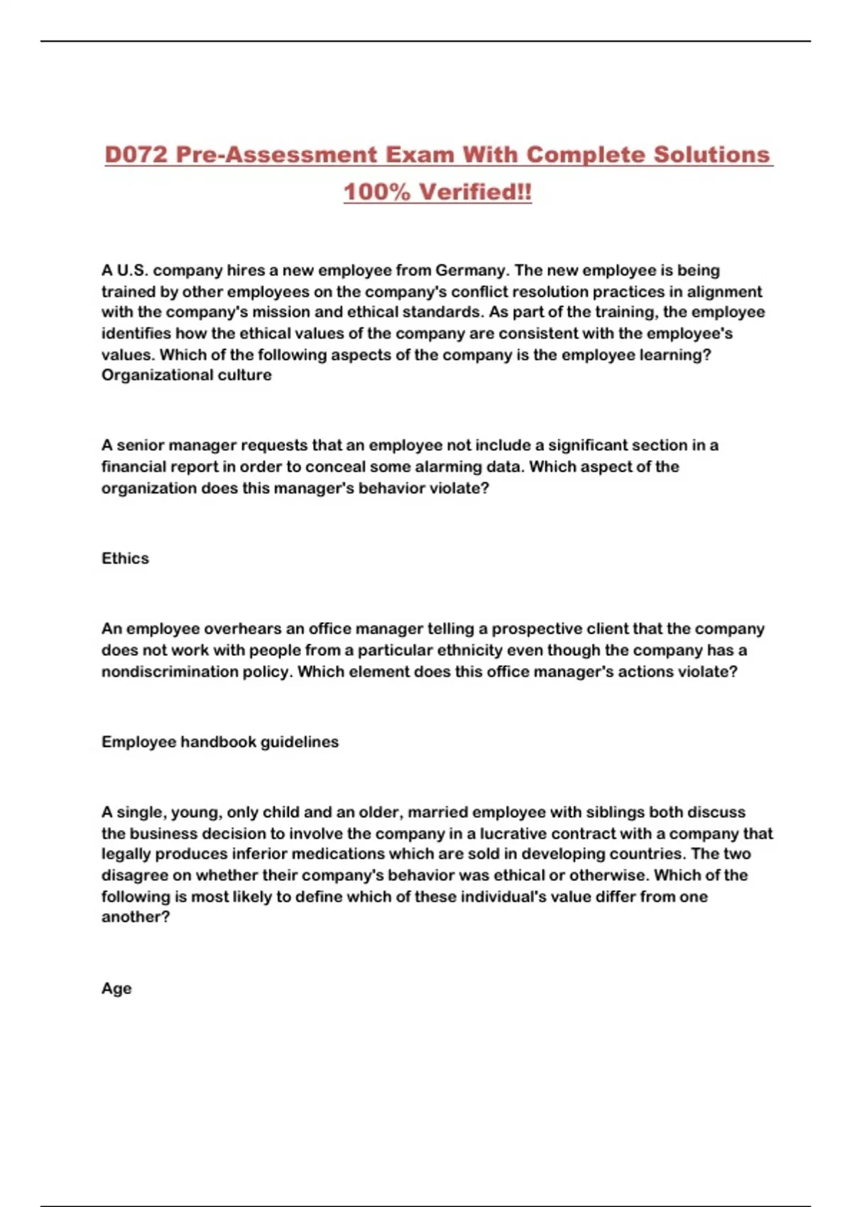 D072 Pre-Assessment Exam With Complete Solutions 100% Verified!!...