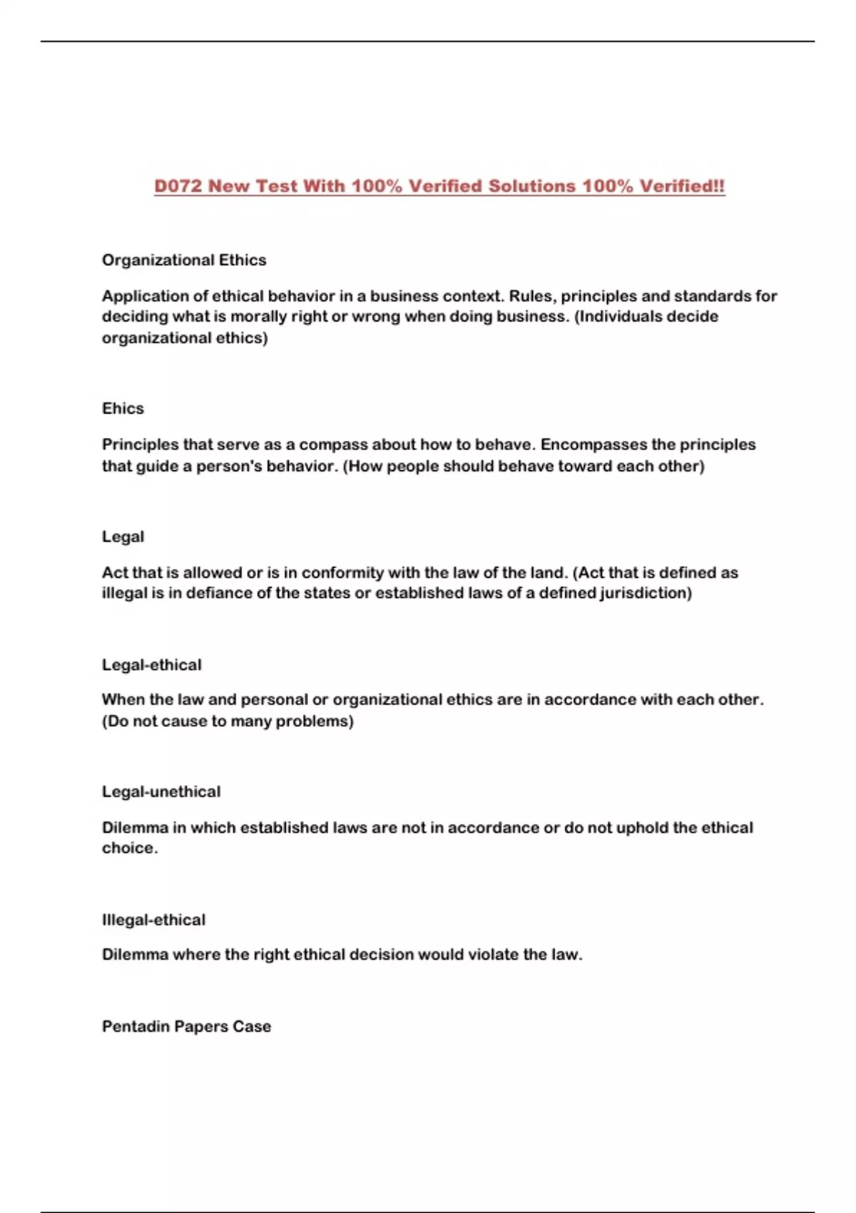 D072 New Test With 100% Verified Solutions 100% Verified!!
