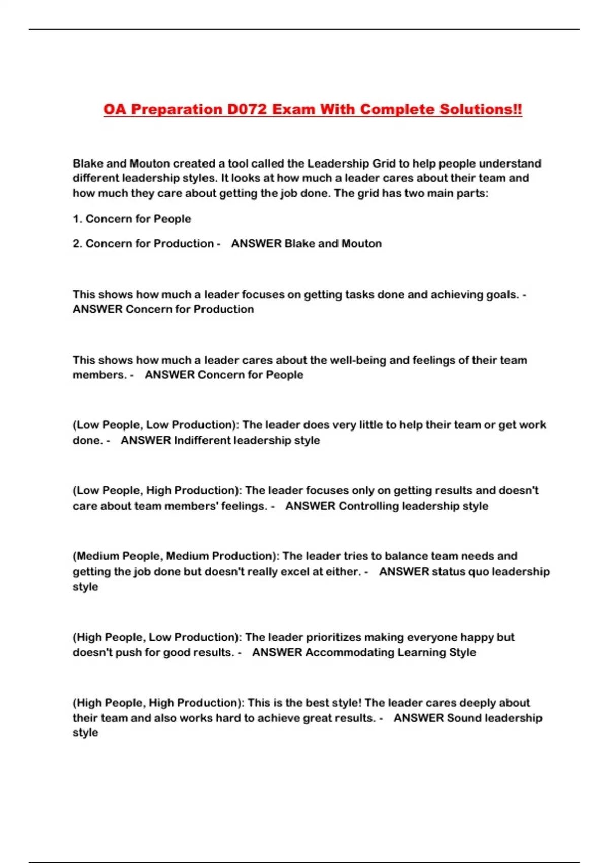 OA Preparation D072 Exam With Complete Solutions!!