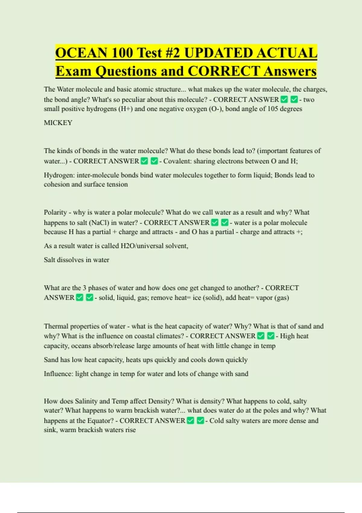water...) - CORRECT ANSWER - Covalent: sharing electrons between O and H;