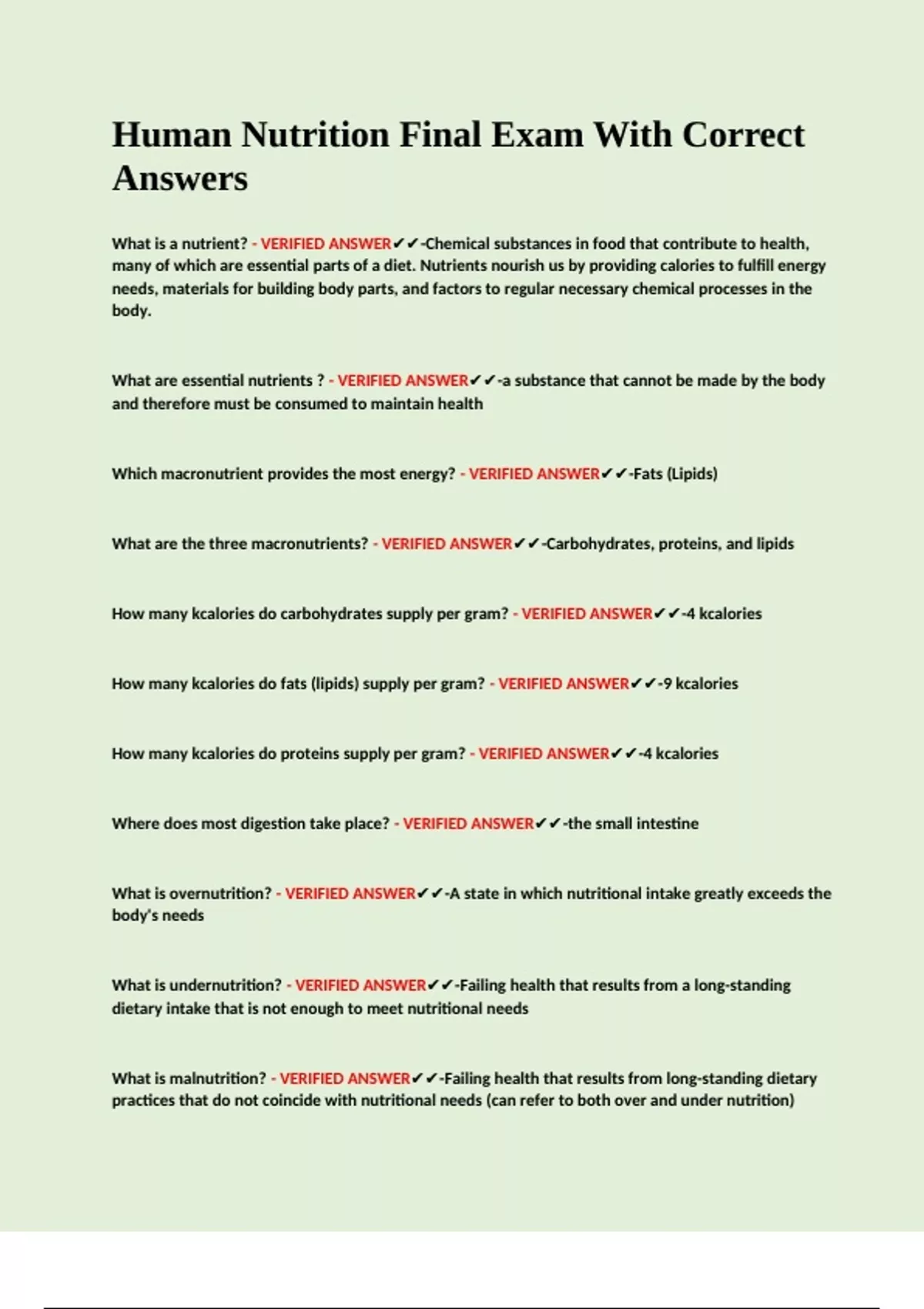 Human Nutrition Final Exam With Correct