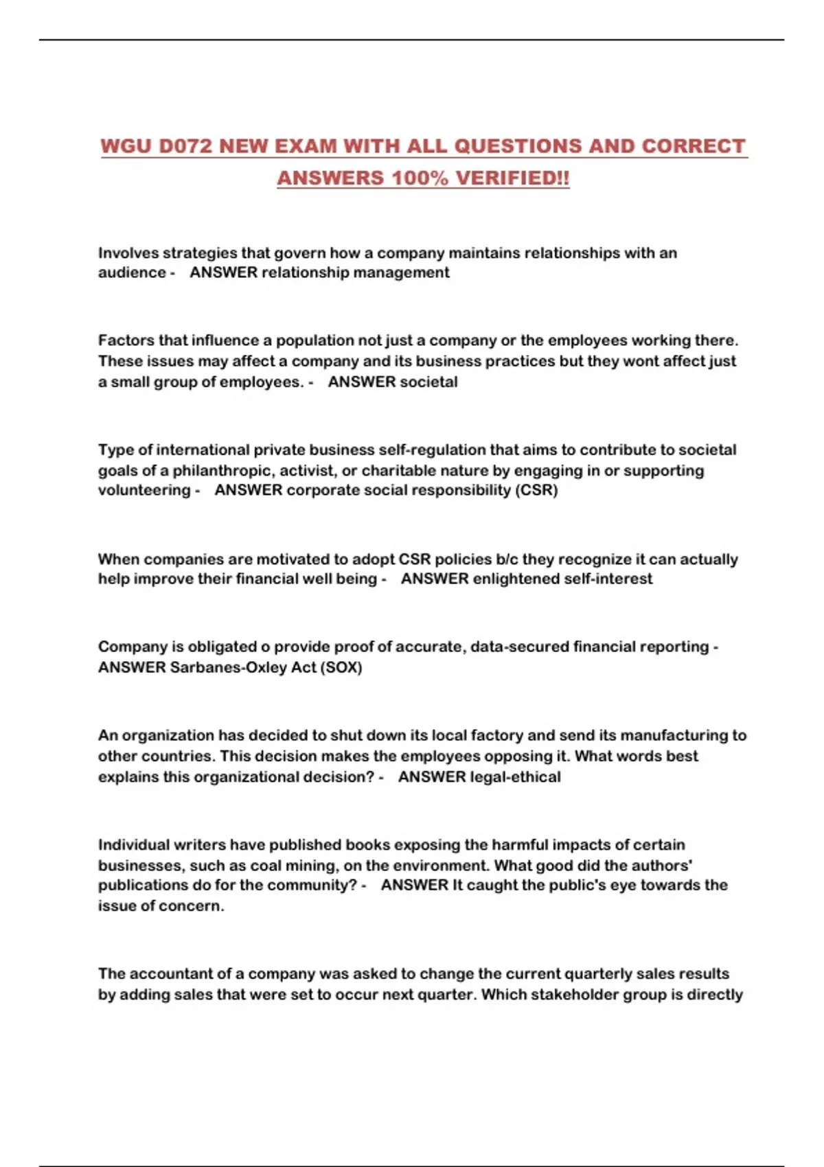 ANSWERS 100% VERIFIED!!