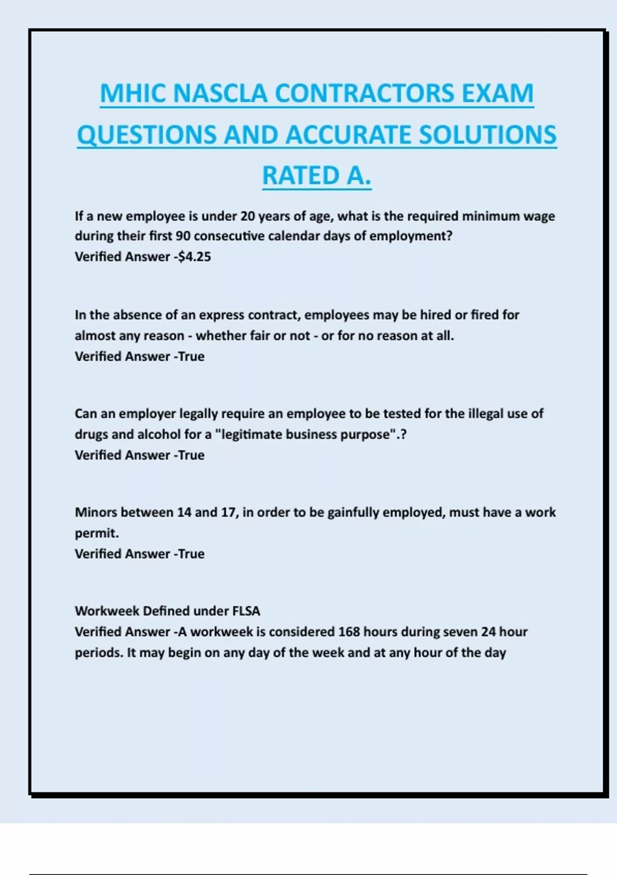 Verified Answer --Wage and Hour Fact Sheet