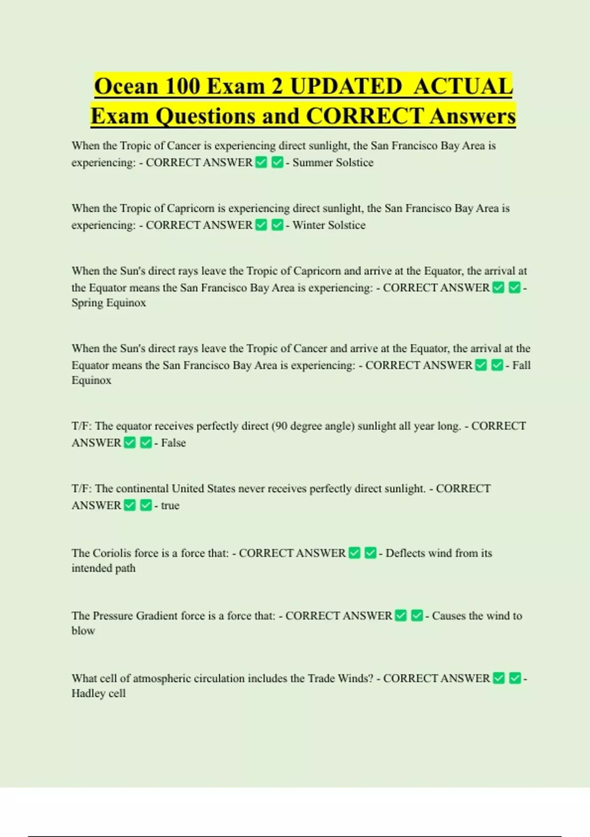 Exam Questions and CORRECT Answers