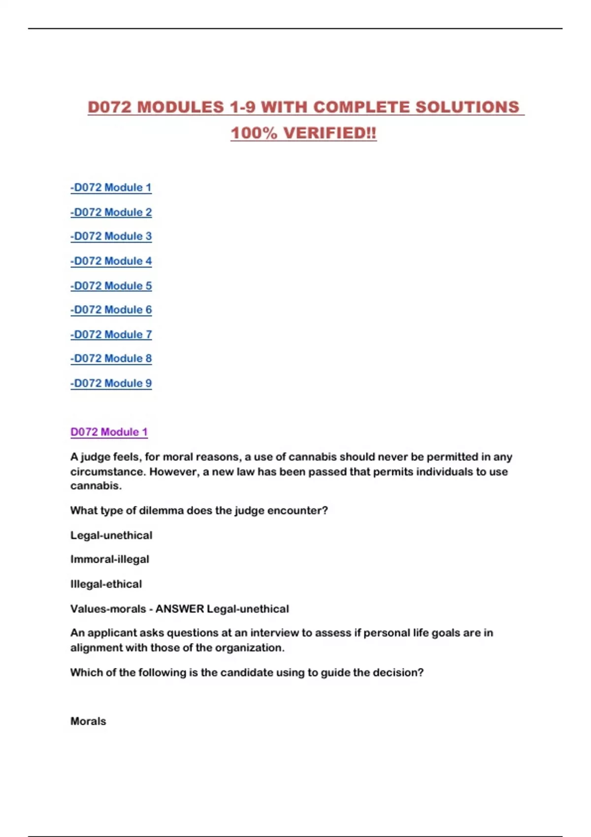 D072 MODULES 1-9 WITH COMPLETE SOLUTIONS