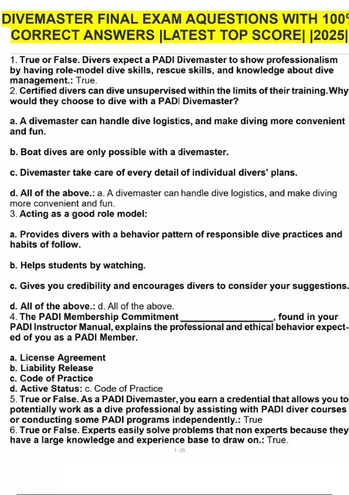 DIVEMASTER FINAL EXAM A QUESTIONS WITH 100% CORRECT ANSWERS |LATEST TOP SCORE| |2025|DIVEMASTER FINAL EXAM A QUESTIONS WITH 100% CORRECT ANSWERS |LATEST TOP SCORE| |2025|DIVEMASTER FINAL EXAM A QUESTIONS WITH 100% CORRECT ANSWERS |LATEST TOP SCORE| |2025|DIVEMASTER FINAL EXAM A QUESTIONS WITH 100% CORRECT ANSWERS |LATEST TOP SCORE| |2025|