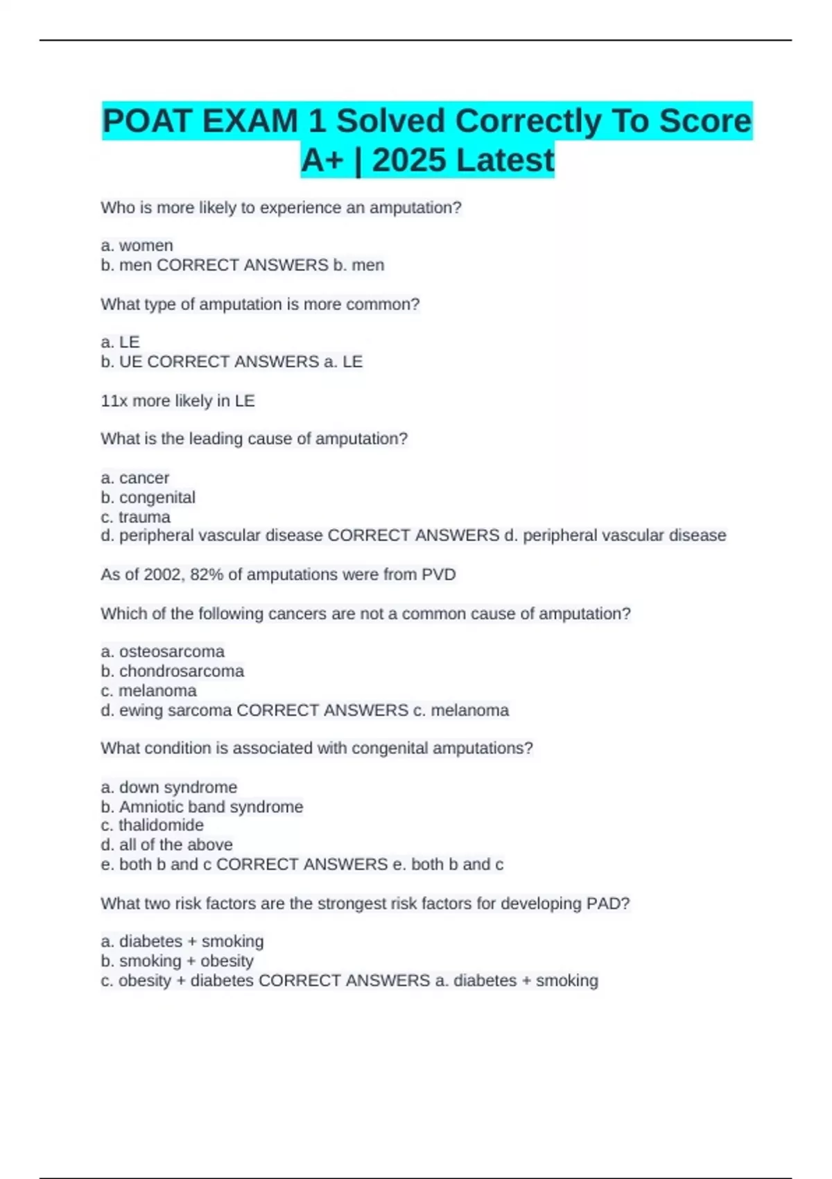 CORRECT ANSWERS Intermittent claudication