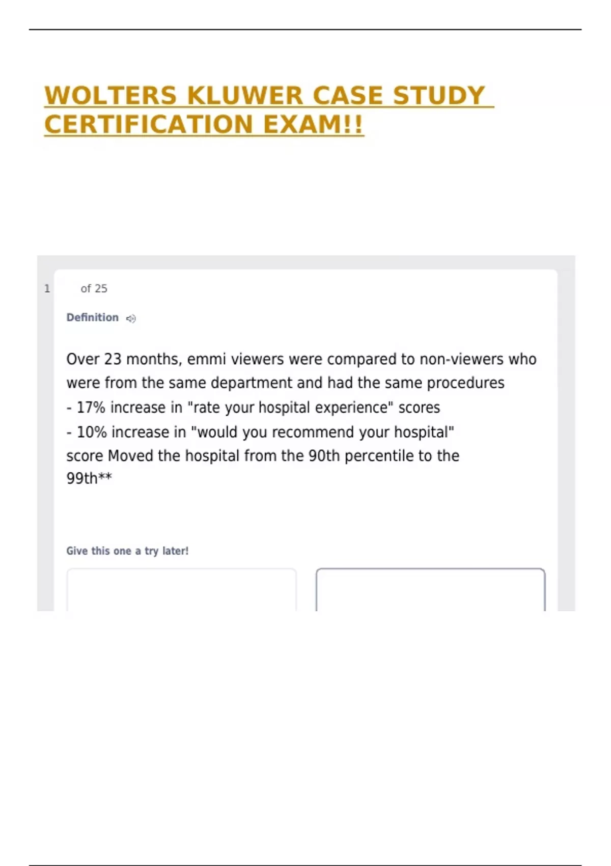 WOLTERS KLUWER CASE STUDY CERTIFICATION EXAM!!
