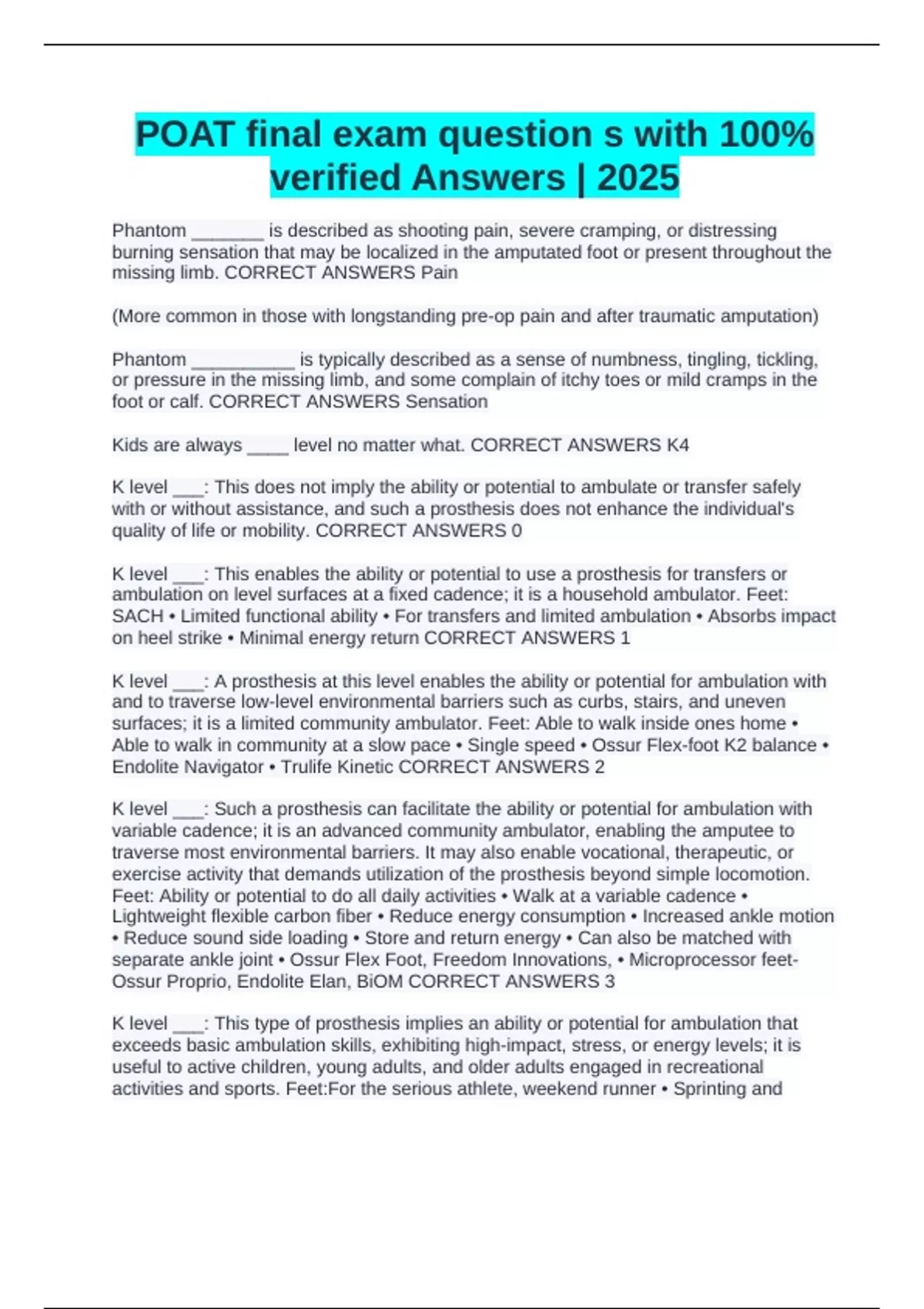 Ossur Proprio, Endolite Elan, BiOM CORRECT ANSWERS 3
